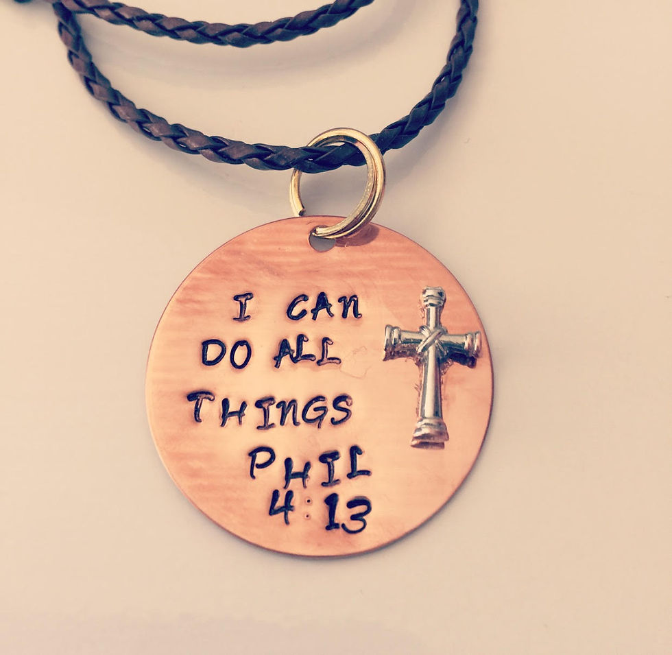 Hand Stamped "Phil 4:13" Necklace (Unisex)
